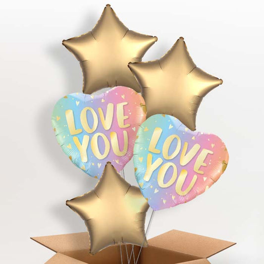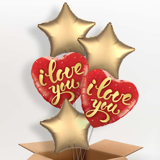 I Love You Helium Balloons in a Box (Gold Script)