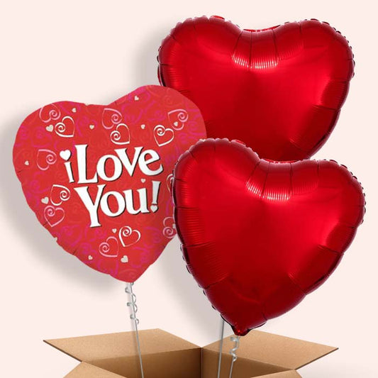 I Love You Red Heart Balloon Bunches inflated with Helium (Trio)