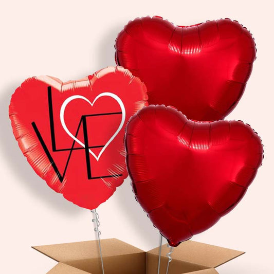 Red Heart Abstract Balloon Bunch inflated with Helium (Trio)