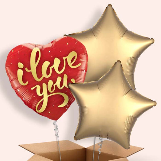 I Love You Gold Script Balloon Bunches inflated with Helium (Trio)