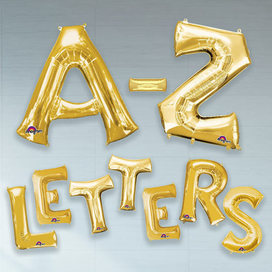Gold Foil Letter Balloons A-Z: Air Fill 16 inches