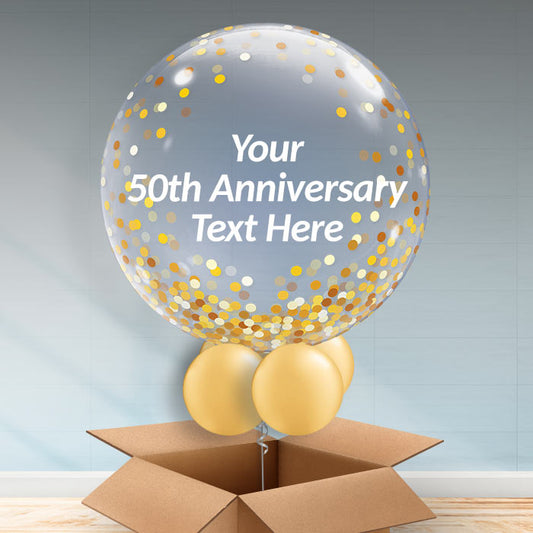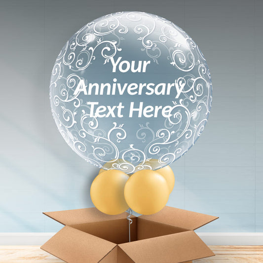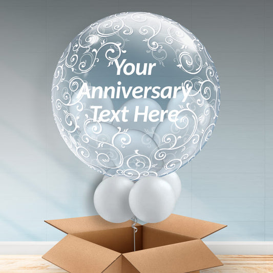 Party Save Smile have a large range of Personalised Anniversary Party inspired Bubble Balloon in a Box gifts and are more than happy to tailor your balloon to your needs.