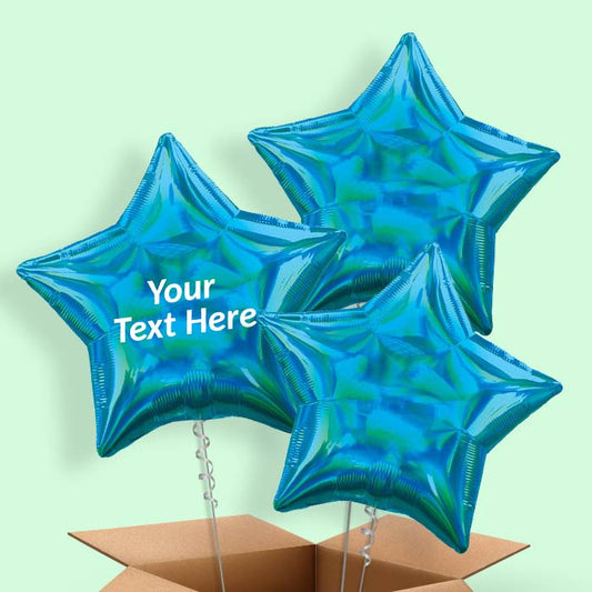 Cyan Blue Iridescent Star Helium Balloon in a Box