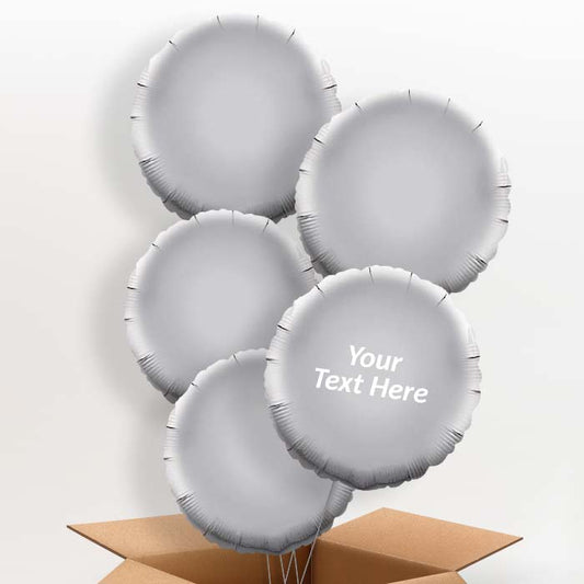 Chrome Silver Circle Personalised Helium Balloons in a Box