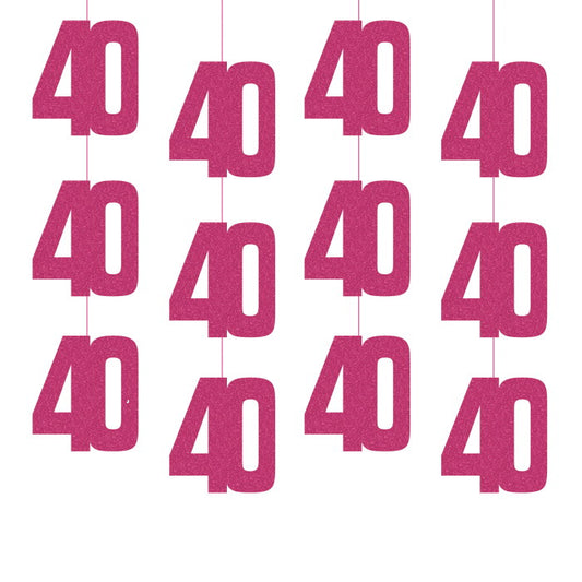 Pink Silver 40th Birthday Hanging Decorations Pack of 6