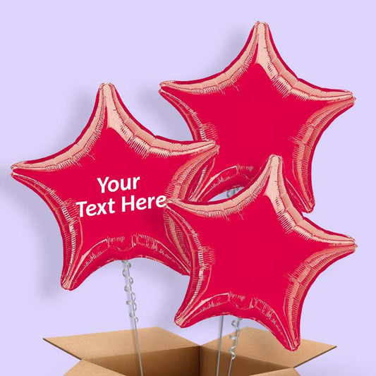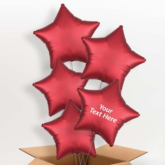 Red Satin Star Balloon Bunch inflated with Helium (Trio)