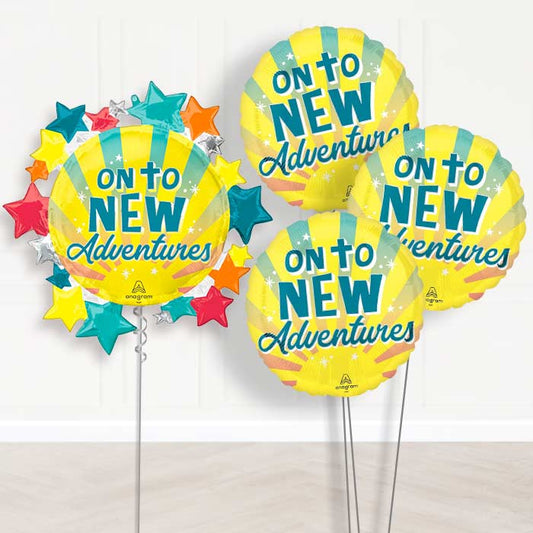 On To New Adventures Balloon Cluster Inflated with Helium