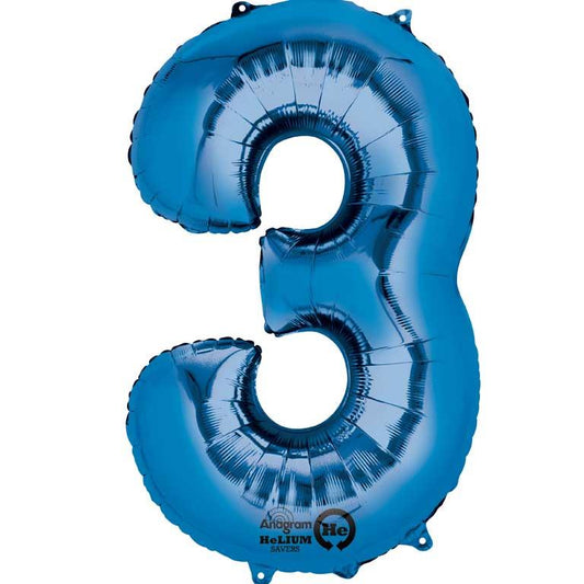 Blue Number 3 Foil Balloon 34 inches