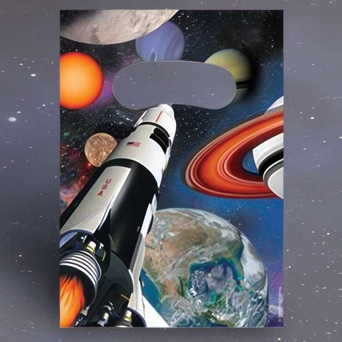 One last thing for your tables that we think you have to consider are some filled Space party bags (or Space party boxes). We think you have to have some Space party bags, loaded with Space party favours and some treats. You Space party bags are the best way to thank your guests for coming to your Space birthday party.