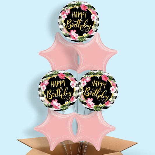 Floral Helium Balloons in a Box - Tropical Happy Birthday
