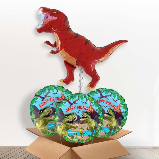 Red T Rex Dinosaur Helium Balloons in a Box