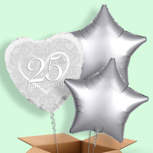 Heart 25th Wedding Anniversary Helium Balloons in a Box
