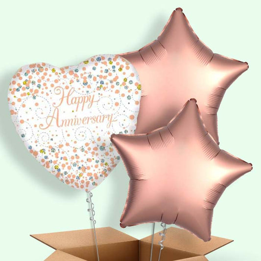 Happy Anniversary Helium Balloons in a Box - Rose Gold