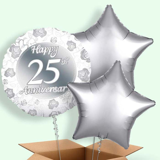 Silver 25th Wedding Anniversary Helium Balloons in a Box