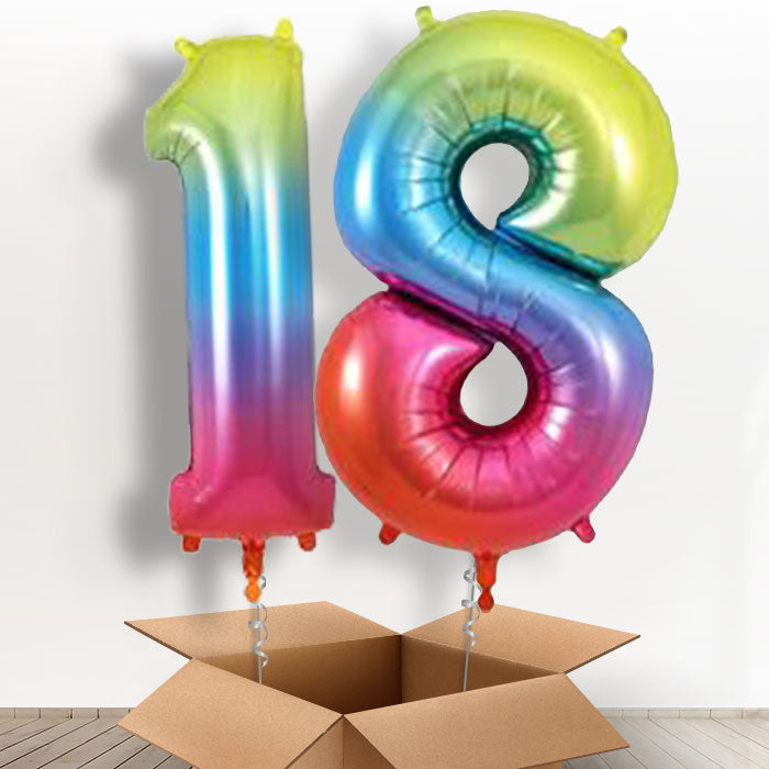 Inflated Rainbow Coloured Giant Numbers 18th Birthday Balloon in a Box Gift.