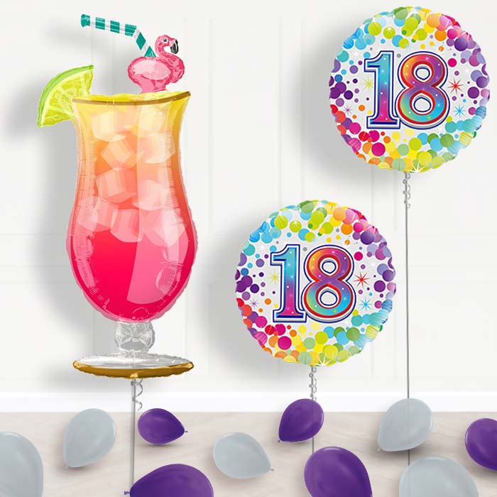 Tropical Cocktail 18th Birthday Helium Balloon Package Delivered