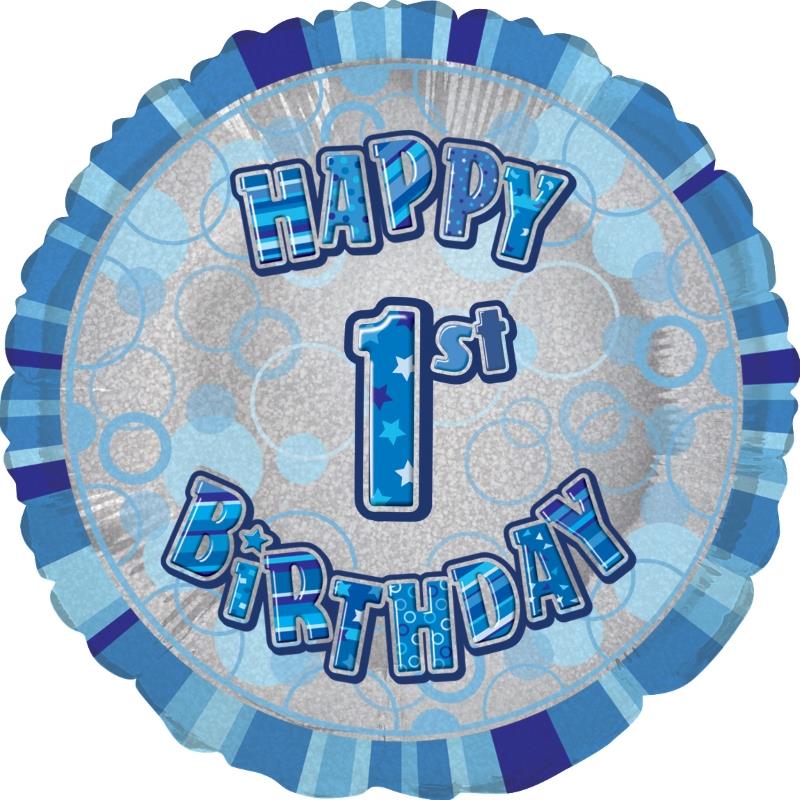 Blue Glitz 1st Birthday Foil Balloons 18 inch