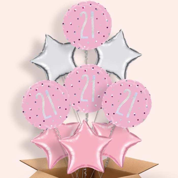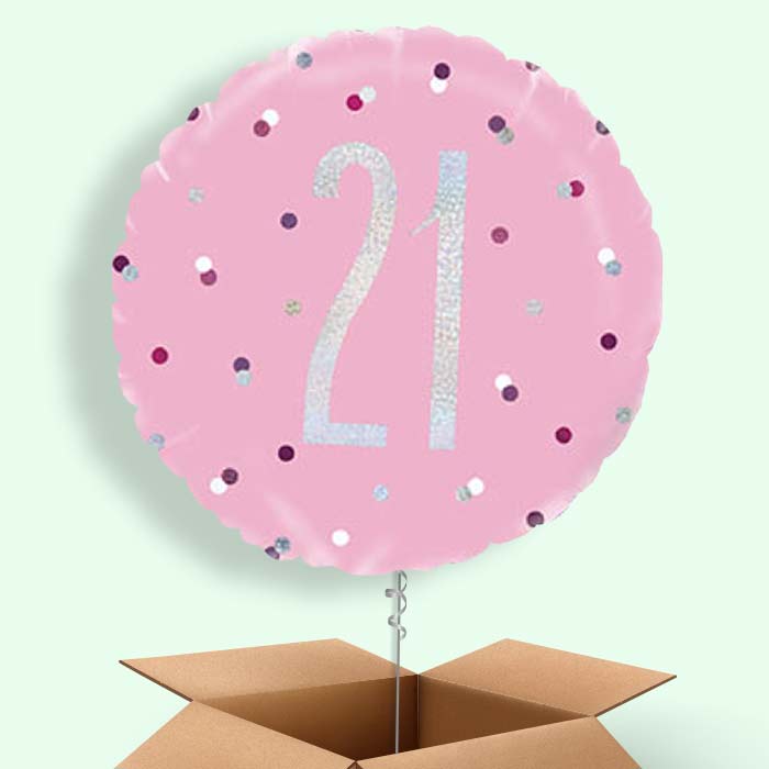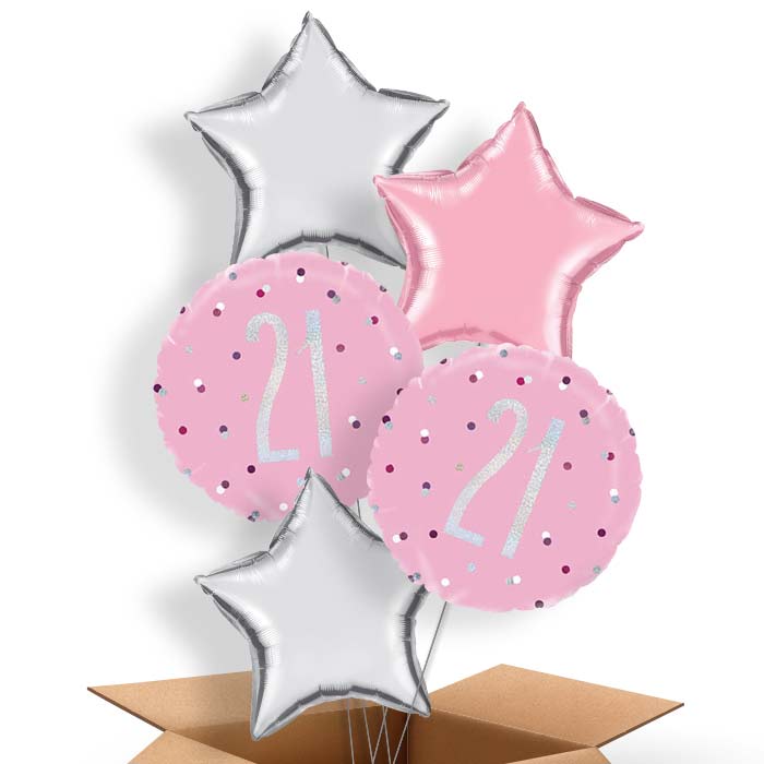 Pink Silver 21st Helium Balloons Delivered in a Box
