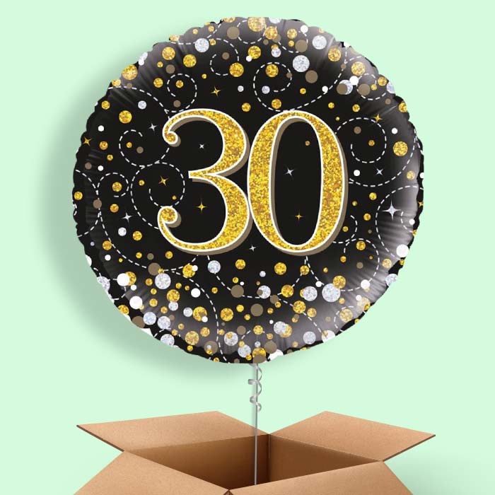 Black and Gold Holographic 30th Birthday Foil Helium Balloon in a Box Gift.
