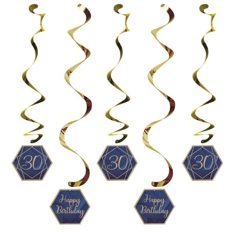 Navy Gold 30th Birthday Hanging Decorations Pack of 5