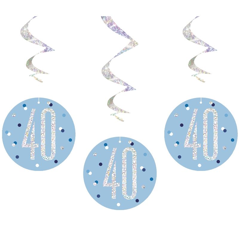 Blue & Silver 40th Birthday Hanging Decorations Pack of 6