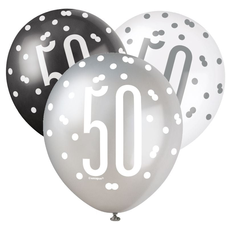 Black and Silver 50th Birthday Latex Balloons Pack of 6