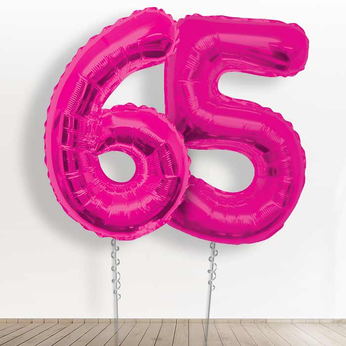 Send a super surprise to celebrate their special 65th birthday with a Pink Giant Numbers 65th Birthday Balloon, they make a great gift, table centrepiece and party decoration.