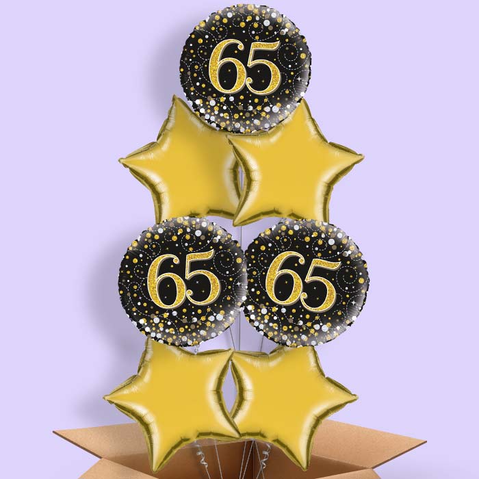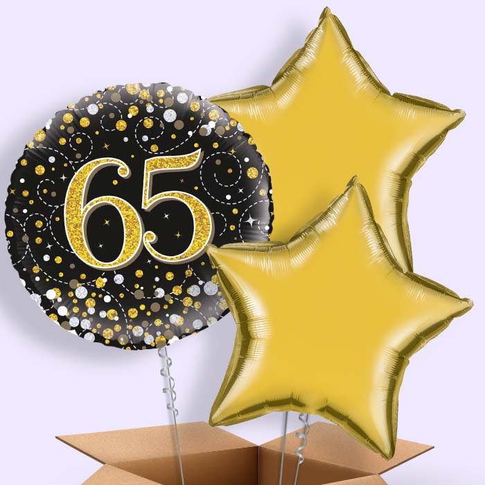 Black Gold 65th Birthday Helium Balloons in a Box