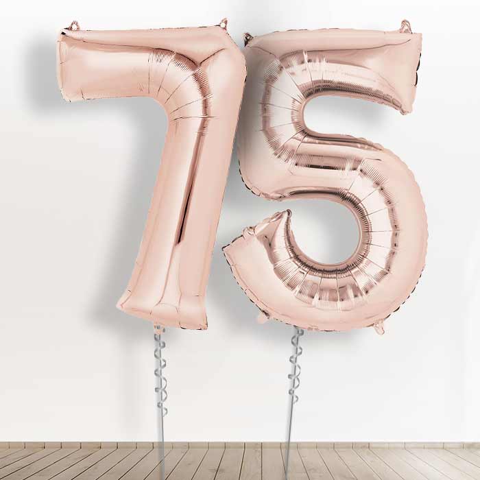Send a super surprise to celebrate their special 75th birthday with a Rose Gold Giant Numbers 75th Birthday Balloon, they make a great gift, table centrepiece and party decoration.