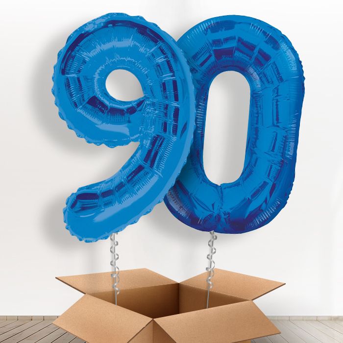 Inflated Blue Giant Numbers 90th Birthday Balloon in a Box Gift.