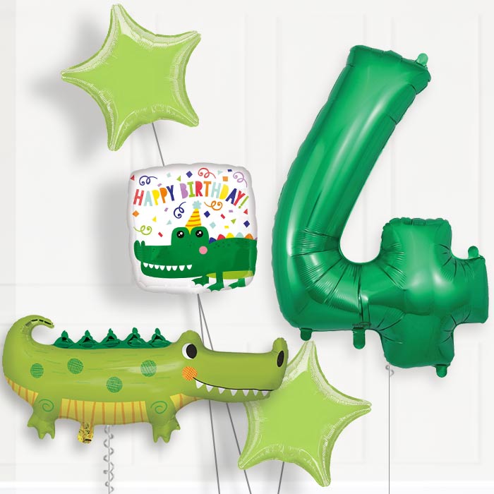 Our Alligator | Crocodile Helium Balloon Package 4th Birthday will ensure you have all the balloons you need for a special 4th Birthday surprise!