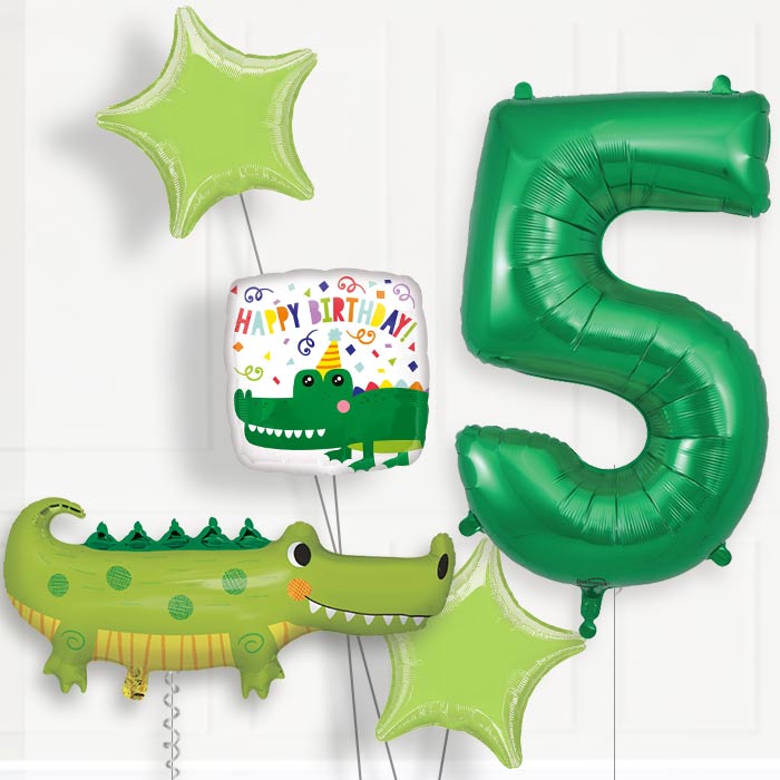Our Alligator | Crocodile Helium Balloon Package 5th Birthday will ensure you have all the balloons you need for a special 5th Birthday surprise!