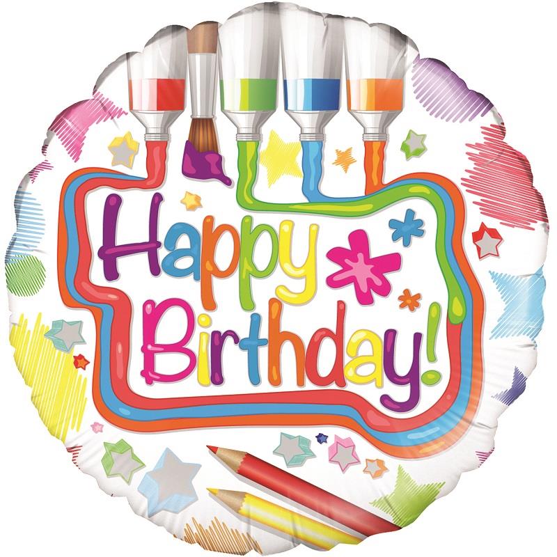 Art Happy Birthday 18" Foil Helium Party Balloon Decoration. Design features Art Happy Birthday print.