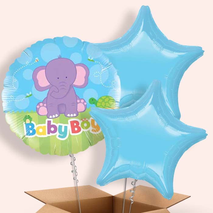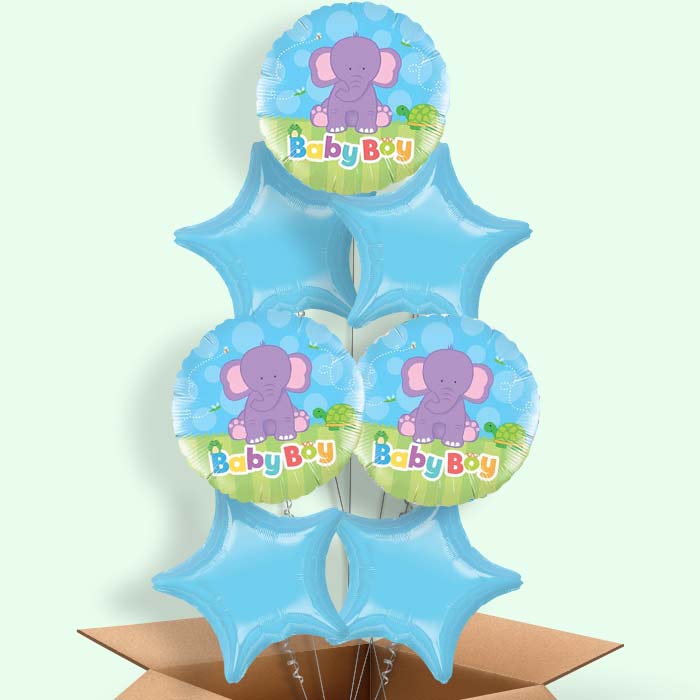 Elephant Baby Boy Helium Balloons in a Box: New Baby Balloon