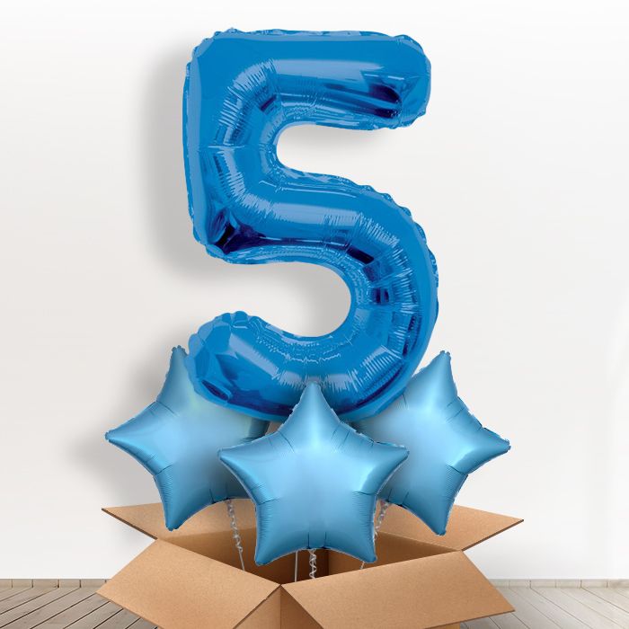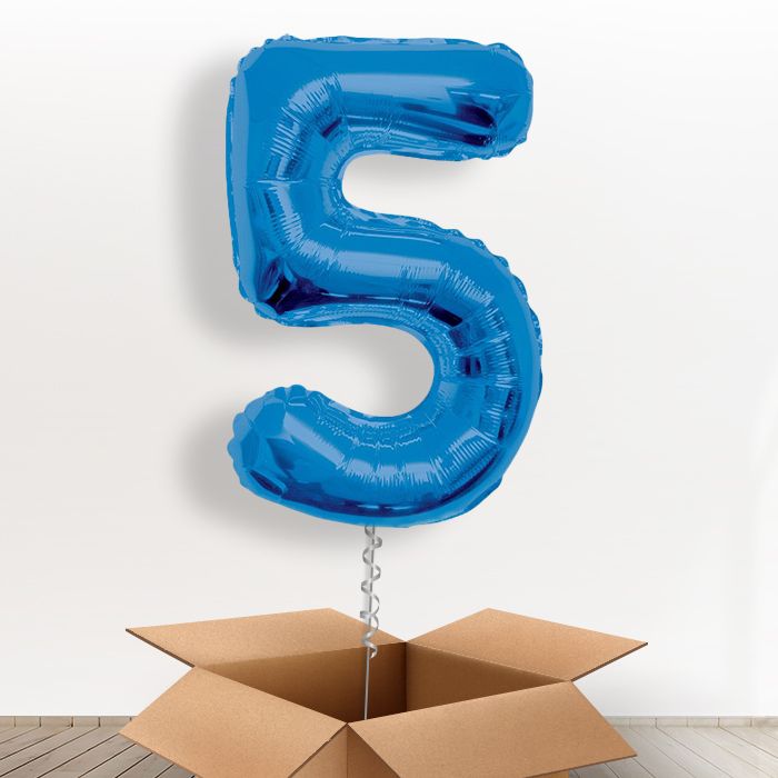 Inflated Blue Giant Number 5 Balloon in a Box Gift.