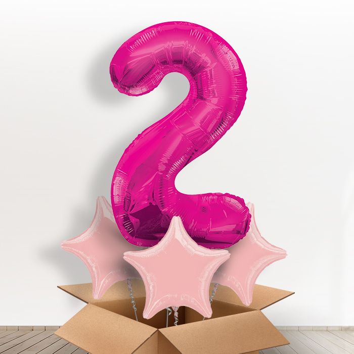 Inflated Pink Giant Number 2 Balloon in a Box Gift.
