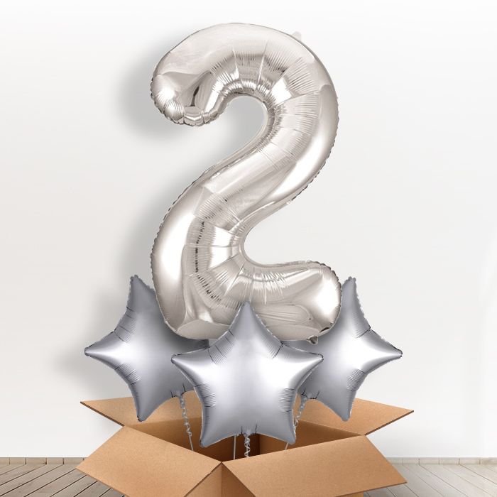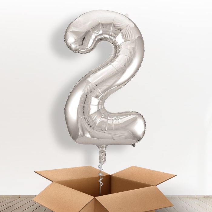 Inflated Silver Giant Number 2 Balloon in a Box Gift.