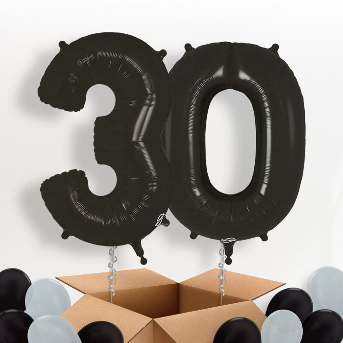 Black 30 Balloons in a Box: 30th Birthday Number Balloons