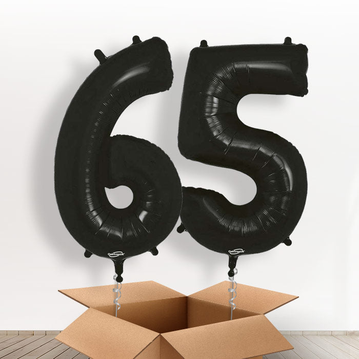 Our Black 65 Balloons in a Box is a great birthday surprise!
