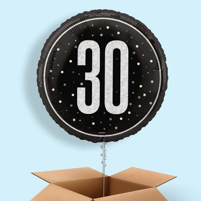 Black and Silver 30th Birthday Helium Balloon in a Box