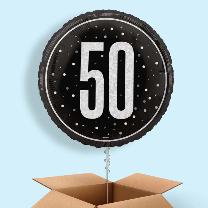 Black and Silver 50th Birthday Helium Balloon in a Box