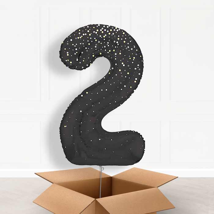 Our Black and Silver Dots Number 2 Balloon in a Box is a great surprise especially on a birthday!