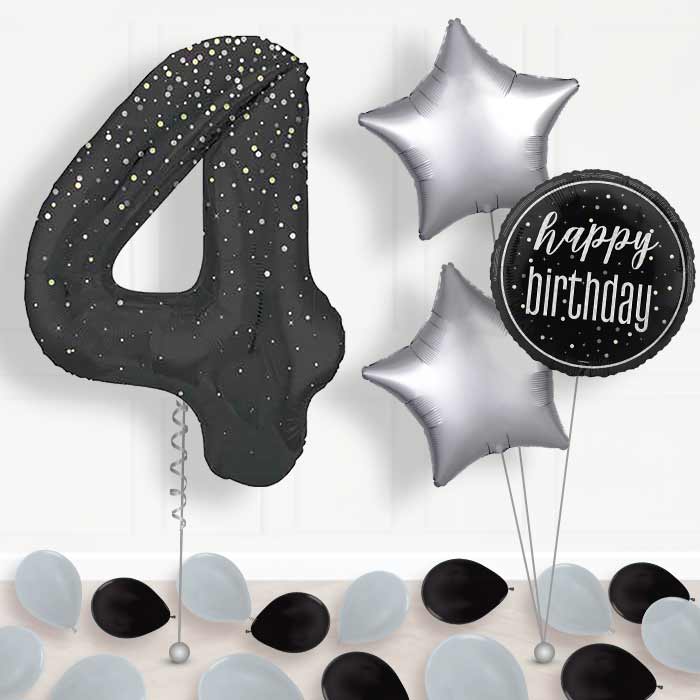 Our Black and Silver Dots Number 4 Balloon in a Box is a great surprise especially on a birthday!