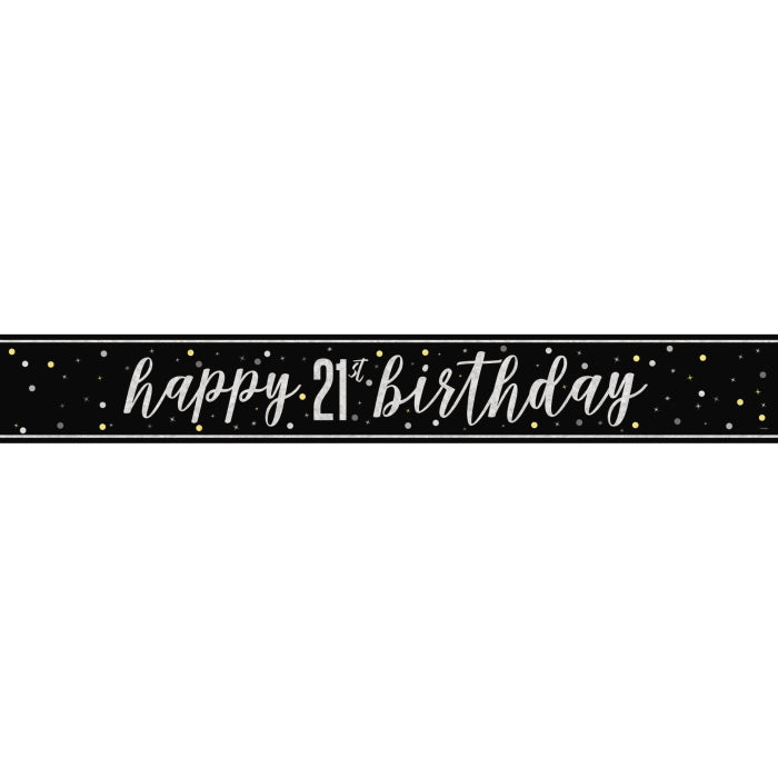 Black and Silver Glitz 21st Birthday Foil Banner 9 ft