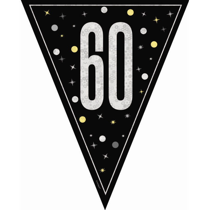 Black and Silver Glitz 60th Birthday Bunting 9 ft