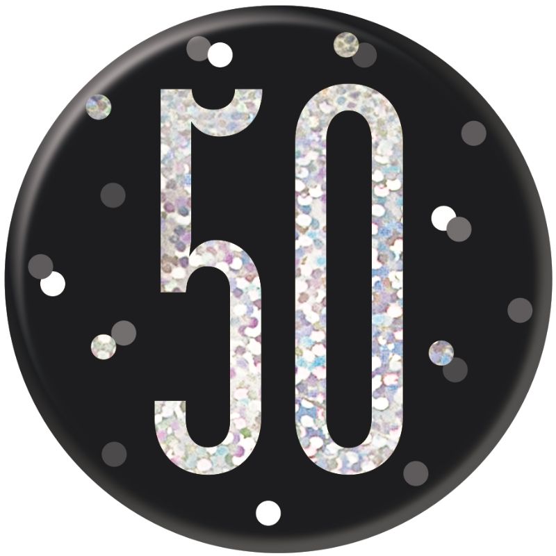Black and Silver Holographic 50th Birthday Badge