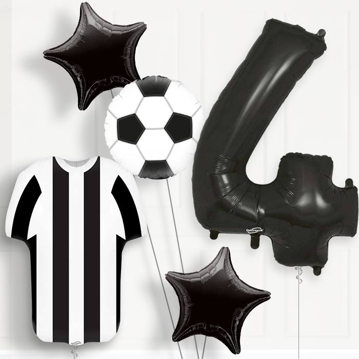 A great Black and White Football Shirt 4th Birthday Balloon Package.
