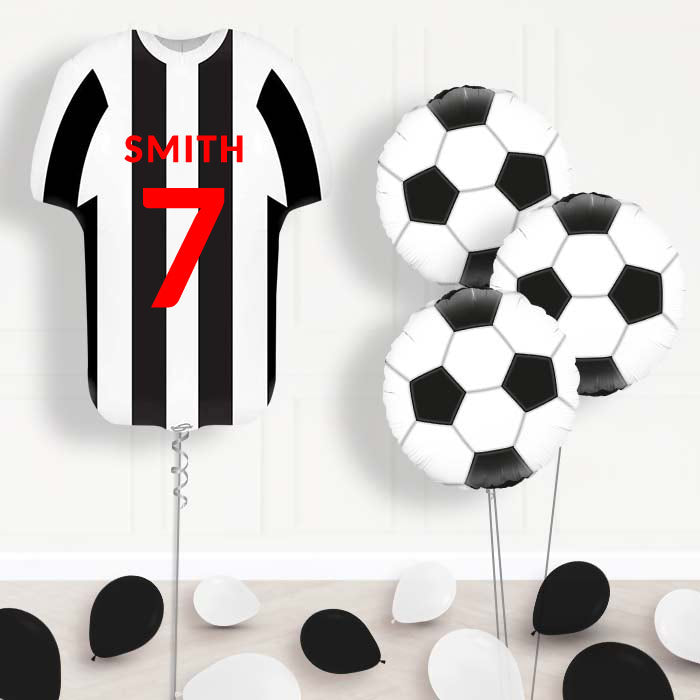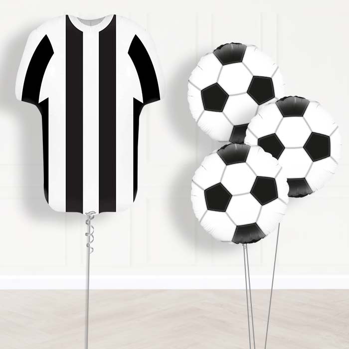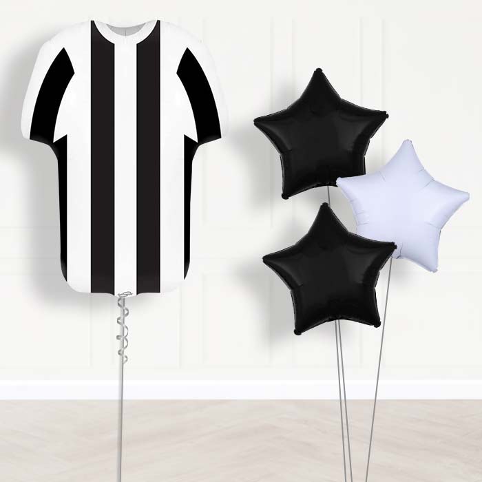 A great Black and White Football Shirt Balloon Bouquet, a fun surprise gift and an epic party decoration in one!