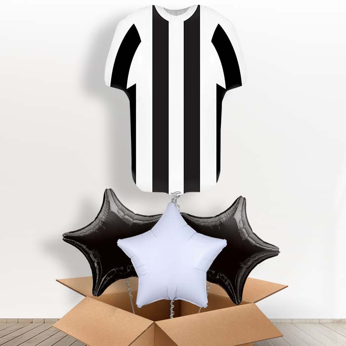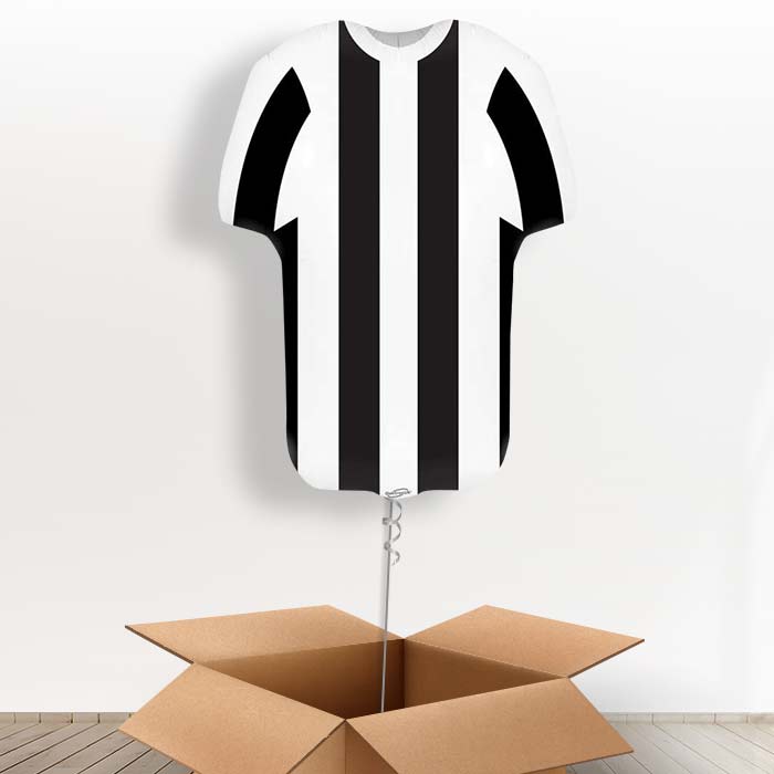 Our Black and White Football Shirt Helium Balloon in a Box is a great surprise gift! They also make a great table decoration too!
