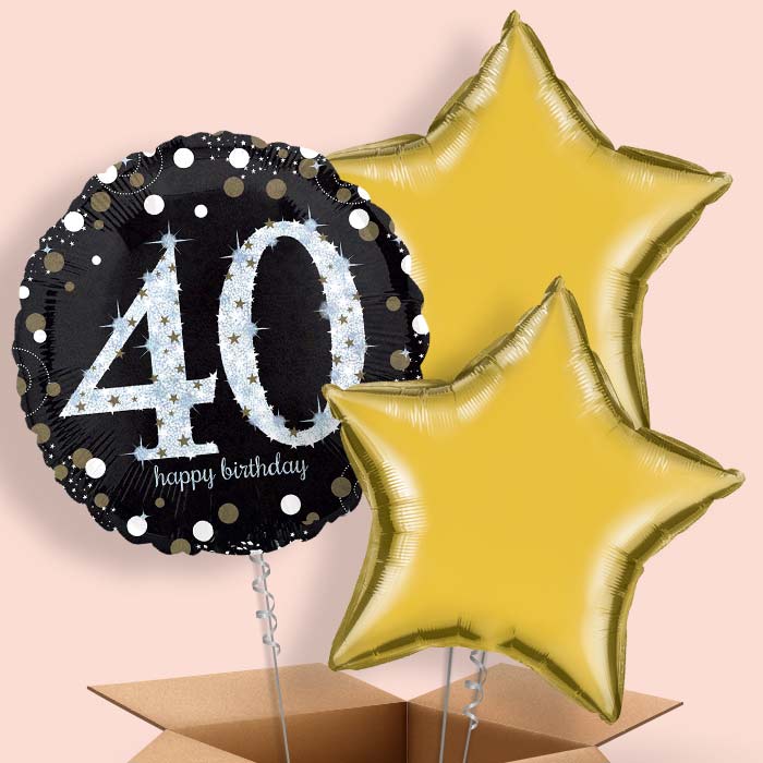 Combine Golds, Blacks and Silvers for a special birthday wish with our Gold Sparkle 40th Birthday Balloons, they make a great gift, table centrepiece and party decoration.
